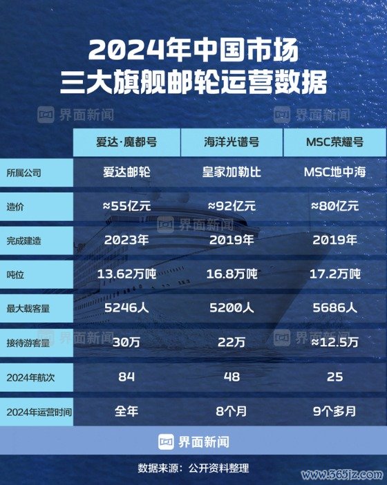 就這樣,從2023年12月23日、12月25日的兩次試航,到2024年全年84個航次,愛達(dá)·魔都號在聚光下開辟了一條屬于自己的郵輪航線。